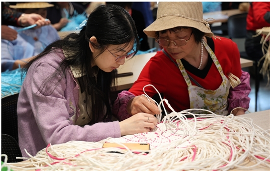 居民参与学习编织课程。