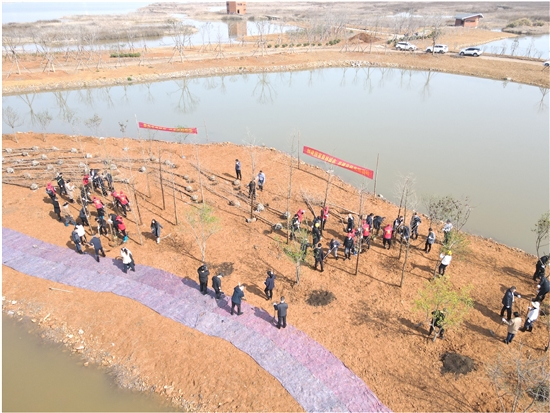 在植树地点,市领导和机关干部们挥锹铲土、扶正树苗、夯实泥土、提桶浇水……经过一番辛勤劳动,150株苗木全部栽种完毕,一株株新栽的落羽杉、卫矛等苗木迎风挺立、错落有致,呈现出一派勃勃生机的景象,成为一道亮丽的风景线。