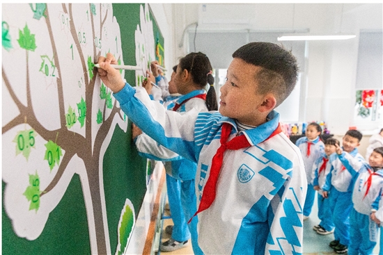 3月12日,方城小学大队部举办“种一棵特别的树”活动,倡导孩子们从每一件小事做起,节约每一滴水、每一度电、每一张纸,践行光盘行动,养成节能的良好习惯,让“节能减排,绿色出行”的意识内化为日常习惯。 记者 章毅 通讯员 潘雪萍 摄