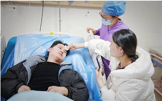 市妇保院产科病区于1997年3月16日开诊。今年病区开诊纪念日,产科推出了“新生之旅”系列活动。产科门诊共为112名孕妈提供义诊服务。在“产房开放日”活动中,工作人员带孕妈们参观住院办理处、待产室、分娩室,提前了解各个产程的注意事项。图为准爸爸体验分娩疼痛,感受生娃的辛苦与不易。