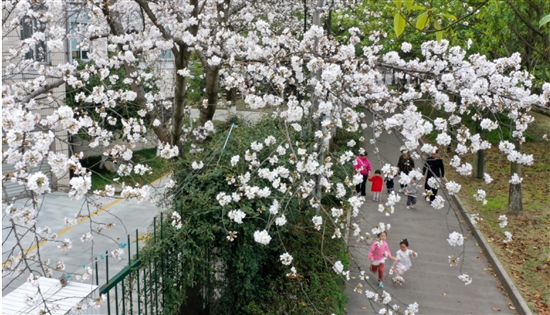近日,许多市民在市区北山公园观赏樱花。春风送暖,连日来,市区各个公园、住宅小区的樱花如约绽放,将城市装点得如诗如画,春意盎然。
