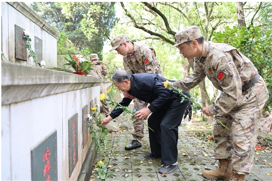 近日,太平街道91岁的老兵邱复彬在街道武装干部陪同下,来到温岭烈士陵园祭扫战友。邱老于1949年参军,曾参加解放战争和抗美援朝战争,他长眠在此的战友牺牲时只有十七八岁。平时,邱老也会经常过来坐坐,看看他们,他希望在自己有生之年,每年清明都能来祭扫他们。 通讯员 张鲜红 摄
