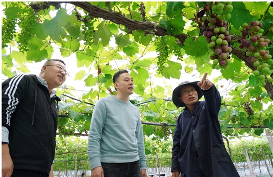日前,滨海镇滨新水果种植园内,台州市农业技术推广中心的农技指导员正指导农户如何科学合理施肥用药、优化种植结构和管理果园等,助力春耕生产,确保农业增产、农民增收。