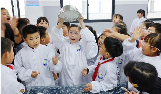 蛋糕出炉的那一刻,香气弥漫,同学们迫不及待地分享劳动成果。他们发挥想象力,用奶油、水果和饼干把蛋糕“打扮”得各具特色。“我很喜欢这节烘焙课,在动手制作中享受了视觉和味觉带来的快乐,还懂得了‘一米一粟,当思来之不易’的道理。我要把蛋糕带回家,让爸爸妈妈尝一尝。”一名同学兴奋地说。此外,几名当天过生日的同学也被邀请到烘焙教室,享用大家精心准备的生日蛋糕。