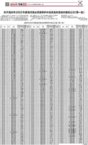关于温岭市2022年度海洋渔业资源养护补贴资金拟发放对象的公示(第一批)