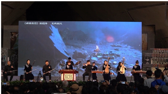 一曲醉入江湖,重拾侠骨柔情。5月2日上午,《铁血丹心》《沧海一声笑》《刀剑如梦》等一首首武侠影视经典曲目响彻观夕硐岩硐音乐厅,厅内座无虚席。长屿硐天景区是《神雕侠侣》《鹿鼎记》等影视剧的拍摄地,为此,景区特意筹备了武侠影视主题曲音乐会。此外,演艺人员还结合景区采石文化,通过采石、唱号子、运石板等,表演了古代采石过程。