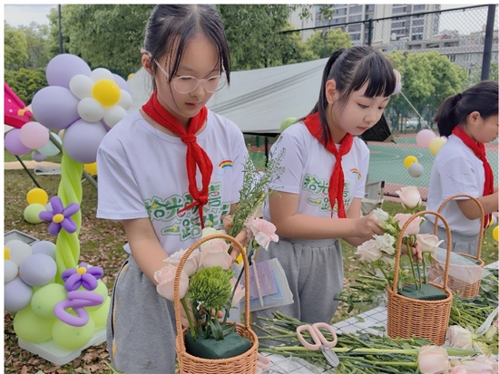 插花课、搭帐篷课、涂鸦课、实验课……在一片绿意盎然中,孩子们欢乐地沉浸在丰富多彩的“公园大课堂”中。在插花课上,专业花艺师向孩子们介绍了插花的基本知识和技巧,包括花材的选择、颜色的搭配、造型的设计等;孩子们挑选心仪的花材,自由组合搭配,有的自然简约,有的色彩鲜艳。在涂鸦课上,孩子们拿起彩色画笔,蘸上鲜艳的颜料,在塑料膜上用心描绘,肆意挥洒自己的创意。各个课堂都令人耳目一新。