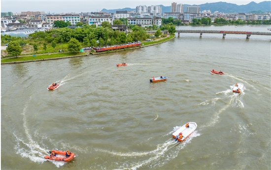 近日,新河镇举行防溺水应急演练暨学生防溺水安全教育活动。现场出动了侦察无人机、抛投无人机、冲锋舟、橡皮艇等,救援队模拟了水上救援、应急消防队施救演练,以预防和应对突发性灾害事件为重点,普及防灾减灾知识和避灾自救技能,提升师生应对各类灾害事件的防范意识和自我保护能力。 记者 徐伟杰 陈小一 摄