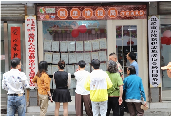 本报讯(记者郑灵芝 通讯员江文辉文/图)“我看她是教师,觉得挺好的。”“这个我到时帮你联系一下。”5月20日,由松门镇团委、妇联、总工会和市益善好人志愿者服务中心主办的老街相亲角喜迎开张。