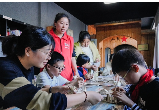 东方知青馆社科基地除了展示知青岁月、传播垦荒精神外,还常规性地向全市各中小学校学生提供公益性知青垦荒生活的“农趣”科普及研学平台,在零距离跟学搓草绳、做风车等“农趣”实操中汲取智慧营养。
