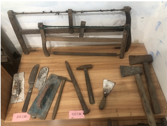 记者随后来到村文化礼堂参观,发现里面陈列着不少老物件,像高脚桶、筛粉桶、煤油灯、镴壶、铜火炉、石匠工具、泥瓦匠工具、木匠工具等。记者饶有趣味地将这些老物件一一拍照留存,陪同参观的值班人员则叫来了村党支部副书记颜帮柏。