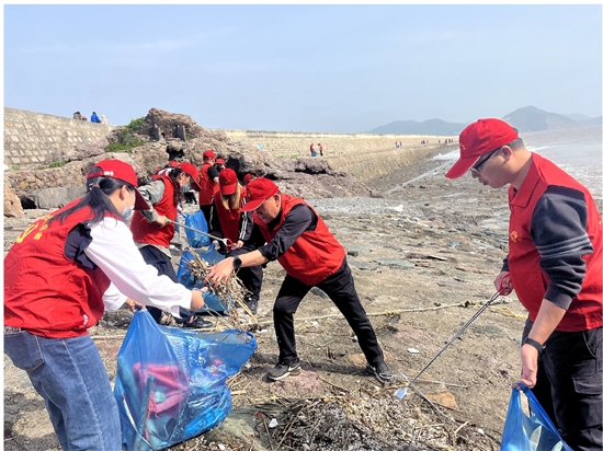 5月27日,城南镇犁头咀的网红海滩上,城之南党员志愿者正开展拾捡海滩垃圾活动,让海滩最大程度呈现出原有的自然风貌,恢复“水清滩净、鱼鸥翔集、人海和谐”的美丽海湾,为温岭建设绿色可持续的海洋生态环境贡献出党员力量。