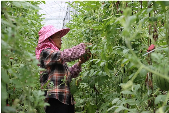 5月27日,在位于箬横镇东浦农场的台州西西里西甜瓜专业合作社种植基地,工人们正对成熟的新品种“网红”小西瓜进行采摘、装运,以运往杭州、上海等城市商超。据了解,该“网红”小西瓜通过起垄吊蔓进行高密度栽培,一串串圆嘟嘟的小西瓜挂在藤蔓上,宛若在荡秋千。