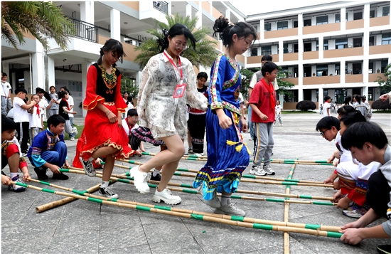 “这既可以学到少数民族文化,还可以锻炼身体,我觉得既好玩又开心。”学生龙芳菲说。