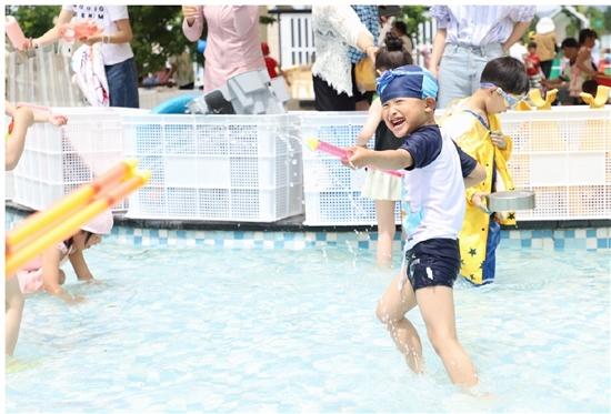 5月30日,东部新区幼儿园内,小朋友们穿着泳衣,在水里嬉戏。为庆祝“六一”国际儿童节,东部新区幼儿园围绕“风舞水韵”主题,开展了一系列与水有关的游戏活动,设置的项目有水韵探秘、水边垂钓、风舞寻宝、水珠彩绘、水链串珠、水战风云等。孩子们尽情沉浸在快乐的游戏中。