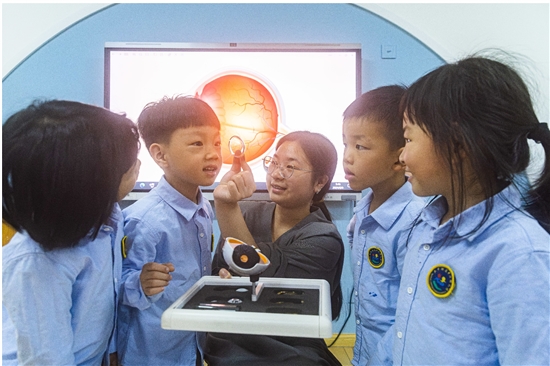 6月6日是第二十九个“全国爱眼日”,今年的爱眼日主题是“关注普遍的眼健康”。6月6日,太平街道中心幼儿园开展爱眼日主题活动,老师们通过课件、眼球模型讲解、视力测试等方式,让孩子们意识到近视的危害以及保护视力的重要性,倡导养成爱眼、护眼的良好习惯。