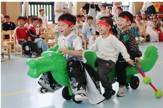 6月6日,泽国镇幼儿园下郑园区举办了一场别开生面的“趣味龙舟争霸赛”活动,让孩子们在欢乐的氛围中感受团结协作的精神,增强对民族文化的认同感和自豪感。