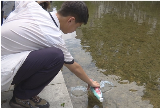 学生将“神器”放进前溪开展“作业”。