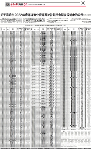 关于温岭市2022年度海洋渔业资源养护补贴资金拟发放对象的公示(第二批)