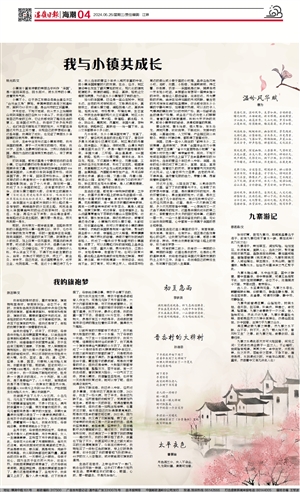 对这片土地,从陌生到了解,从熟悉到热爱。这里,留下了我的青春与汗水,也承载了我的梦想与幸福。这里,是我情窦初开的地方,是我怀着好奇心、勇往直前的地方;这里,是我工作、生活了几十年的地方,有过无数美好记忆,也历经风雨沧桑;这里,是我一次次跌倒又爬起,多少次风雨艰难中哭醒,一心想离开又一次次舍不得离开的地方。这里是伴随我成长的第二故乡,承载着我太多太多的回忆和希冀。这里的一草一木、一山一水都深深留在我的心里,无论以后我走到哪里,心中都有一份独属于泽国的思念和牵挂。