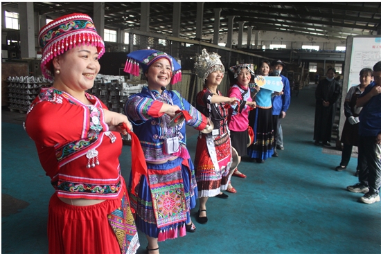 6月28日,在“七一”建党节到来之际,城南镇宣传办、统战办、镇妇联组织石榴红理润文艺宣讲团,先后来到浙江荣发动力股份有限公司、S1轻轨站台、城南镇怡心养老院等地,开展三句半《勇立潮头显担当》快闪活动。宣讲团成员来自壮族、苗族、土家族等少数民族,大家穿戴民族服饰,以这种新颖的方式传递党的好声音。