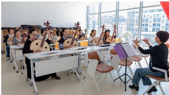 近期的每周四晚,周女士总会赶在晚上7时之前,到达新文化馆的培训室,开始一个半小时的流行歌曲演唱学习。近期学的歌曲《小美满》,她还带上10岁的孩子一起学。“夜接力”如此丰富,是她此前从未想到的。