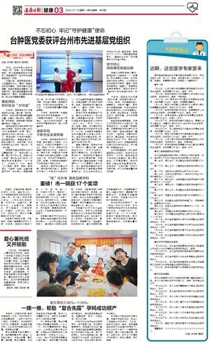 该院骨科兼关节外科主任江敞,是骨科省临床重点专科项目学科带头人、台州市名医工作室领衔人、温州医科大学硕士生导师。多年来,江敞带领团队深耕学科领域及新技术、新项目,连续3届获得温岭市新技术新项目一等奖。在2022年度全省重点术种排名中,江敞团队开展的髋关节置换、膝关节置换手术分别位居全省第9名、第10名。