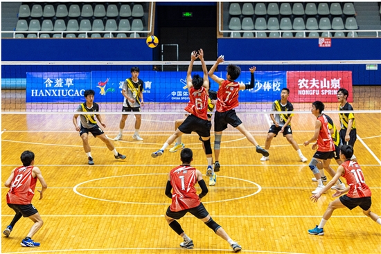 近日,在市体育中心体育馆内,2024年浙江省青少年男子排球锦标赛甲组比赛宁波队正对战嘉兴队。