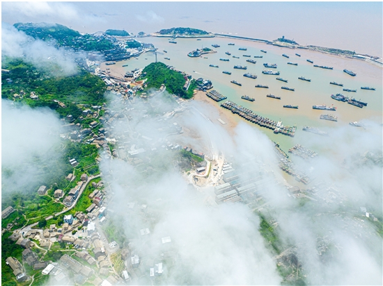 近日,在石塘镇的渔港内,休渔船和各类船只有序停泊着,时而有船只往来穿行,在蓝天、碧海的映衬下,构成一幅美丽画卷。