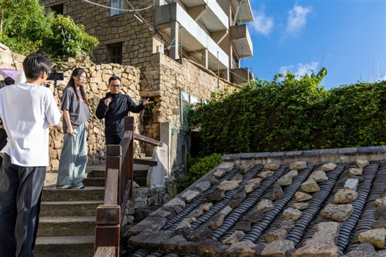 里箬村省级文化特派员朱海伟正向实践团成员介绍村庄情况。