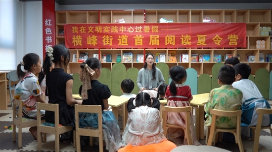 本报讯(记者陈俊杰 通讯员沈益峰文/图)“我给大家推荐的是《神奇修复师》这本书,秦始皇陵兵马俑被誉为世界第八大奇迹……”近日,在横峰街道宗文社区,10余名身穿汉服的学生正在阅读指导老师的带领下开展阅读学习。这是横峰街道首届阅读夏令营的一幕。