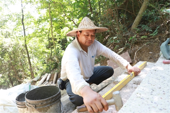 连日来,城西街道碗头山公园一期工程正在火热施工中,囊括了公园入口景观节点、登山步道、半山空中景观栈道、钢结构空中跑道及绿化工程、亮化工程等建设事宜。图为8月2日上午,师傅们顶着烈日,对登山步道进行施工。
