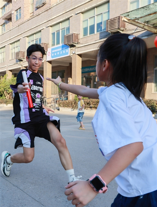 当前,2024巴黎奥运会正在火热进行中。奥运风也刮到了城北街道南山村。近日,南山村新时代文明实践站携手街道社工办、妇联、团工委组织开展奥运主题趣味运动会。小选手们积极参加射箭、接力跑、移砖过河、拔河等项目,在运动中感受奥运精神,用行动为中国奥运健儿加油。图为孩子们正在进行接力跑。