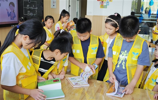 本报讯(记者江琳 通讯员陈榕文/图)“小朋友们,你们知道盗版书都有哪些特征吗?”“材质差,页面会黏住。”“有错别字,错误百出。”“气味臭,价格还特别便宜。”8月10日,在九龙小学神童门校区,来自全市17所小学的30名小朋友踊跃抢答老师的提问。这场“绿书签”主题实践活动由市委宣传部、市融媒体中心、市教育局主办,城西街道、九龙学校神童门校区协办。
