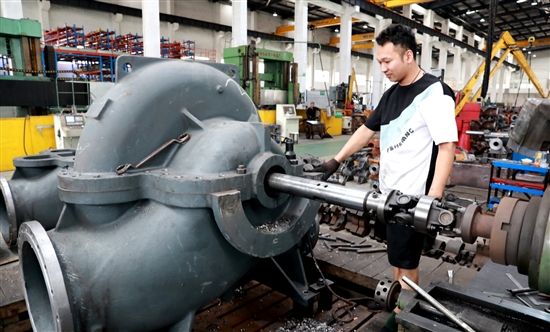 近日,位于新河镇的浙江上浦科技集团有限公司生产车间内,工人们正赶制各类大型水泵。该企业生产的水泵产品,比普通的家用水泵大4至10倍,广泛用于钢铁、石化、电力、煤炭等行业。当前,该企业大型水泵市场走俏,订单充足,预计产值比去年增长25%。