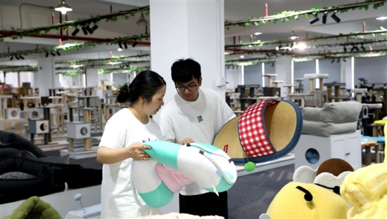 近日,在台州华茂工艺品股份有限公司的展厅里,随处可见夏天的元素,啤酒形状的降温冰床,形似泳池的凉感猫窝,椰子树、沙滩床组成的猫爬架……既精致又显得清凉。