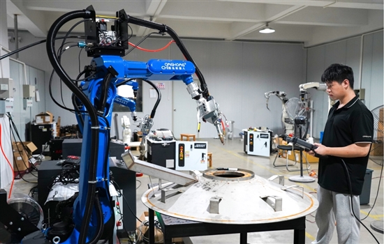 智能化的生产车间内,机器人有条不紊地按照行程轨迹进行工作。