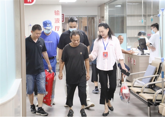 从东方医院出发前,邬蔚林、李欢宁等人赶来为李明开送行。“回老家后,你先把身体养好,再好好工作、生活,好不好?”邬蔚林再次嘱咐李明开。
