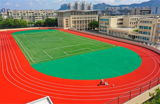 近日,太平街道南屏路南侧,建设者在划“空中操场”跑道线。随着新学期的到来,市第四中学操场将以崭新的面貌为学校师生提供一个现代化的健身活动场所。
