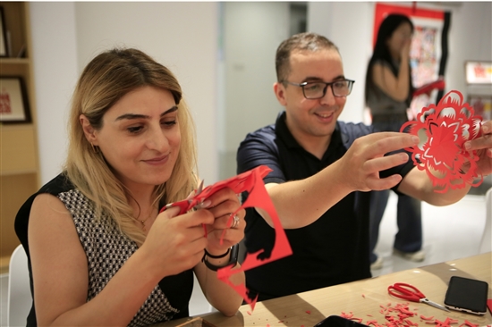 8月28日,来自亚美尼亚的维维安(Vivian)等3名外籍教师向太平街道民间剪纸艺人林荣文学习剪纸技艺,感受中国传统文化的魅力。