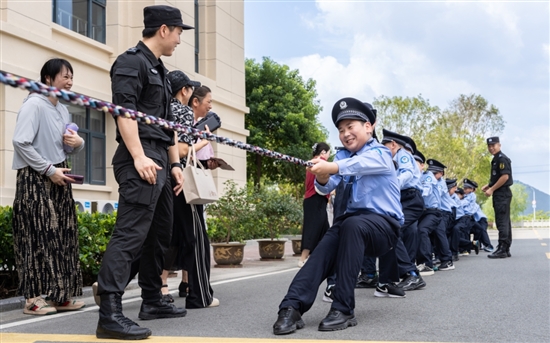 小警员们在拔河中展开了一场力量与毅力的较量。