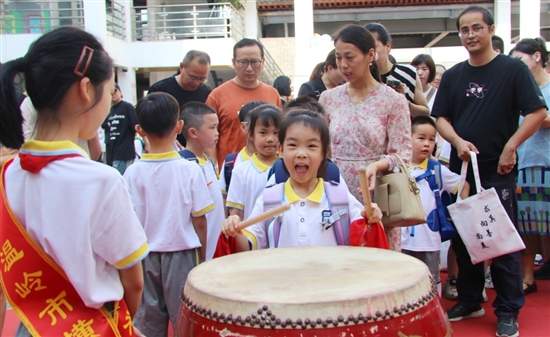 击鼓明志、朱砂启智、入学礼包……8月31日,横湖小学举办了“以礼入学 鹤鸣启航”一年级新生入学仪式,以满满的仪式感为孩子们开启一段别样的人生旅程。记者 姚天 通讯员 张鲜红 摄