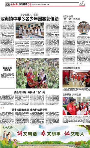 本报讯(记者贾宁欣 通讯员李丹)近日,在浙江乌镇互联网之光博览中心举行的第七届全国青少年人工智能创新挑战赛全国总决赛落下帷幕,来自我市滨海镇中学的3名学生在初中组机器人工程设计专项赛中获奖。管鑫宇、朱腾昱以两轮满分1620分的成绩荣获全国一等奖(金奖),尚昱宏荣获全国二等奖。