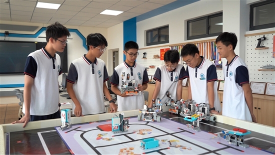 同学们正在进行机器人任务实践的方案研究。记者 林特栋 摄