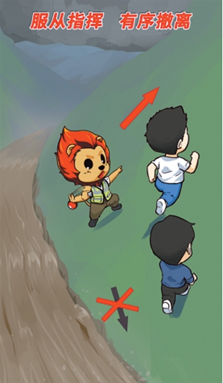 (2)泥石流发生时,不要沿泥石流沟跑,应向沟岸两侧山坡跑。