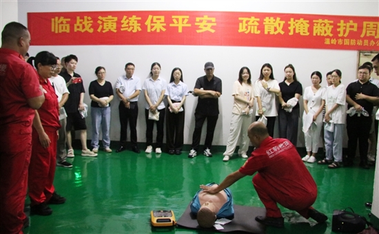 9月14日,市国防动员办公室联合市科技创业服务中心、市红十字红豹救援队在科创大厦开展人员临战疏散演练。此次演练不仅检验了应急疏散预案的实效性,也进一步增强了群众的安全意识和自救互救能力。图为集合点内,市红十字红豹救援队队员为参训人员讲解心肺复苏急救法及自动体外除颤仪操作方法。