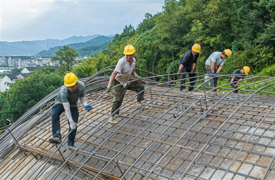 10月6日,温峤镇焦桐村的温玉铁路温岭西站站房施工现场,呈现一片大干忙碌景象。工人们拼装挂篮、绑扎钢筋、浇筑混凝土……坚守施工一线,紧抓建设“黄金期”。