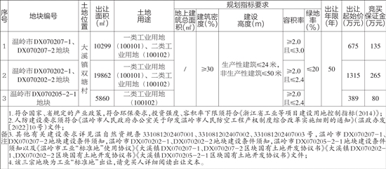 温岭市DX070207-1、DX070207-2地块挂牌截止时间为2024年11月8日9时;