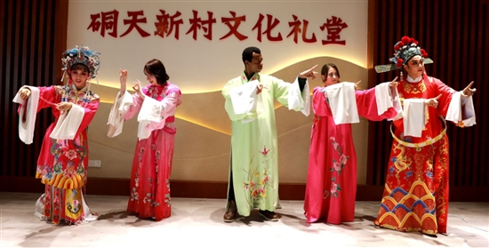 本报讯(记者叶琳 通讯员林绍禹文/图)10月1日上午,来自伊朗、尼日利亚、土耳其等国家的8名台州学院留学生来到我市新河镇硐天新村文化礼堂,体验手舞龙、舞狮、越剧等,品尝当地特色小吃,沉浸式感受中国传统文化的魅力,与村民一起欢度佳节。