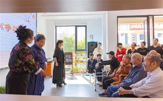 10月10日,横峰街道新时代文明实践所联合宗文社区、莞渭陈村文化礼堂,走进社区居家养老服务中心开展重阳主题慰问活动。志愿者们带来了越剧、小品、重阳祝福礼等精彩节目,并为老人们送上健康义诊、免费理发等暖心服务,现场沉浸在一片欢声笑语中,营造了浓厚的敬老爱老氛围。记者 徐伟杰 通讯员 沈益峰 摄